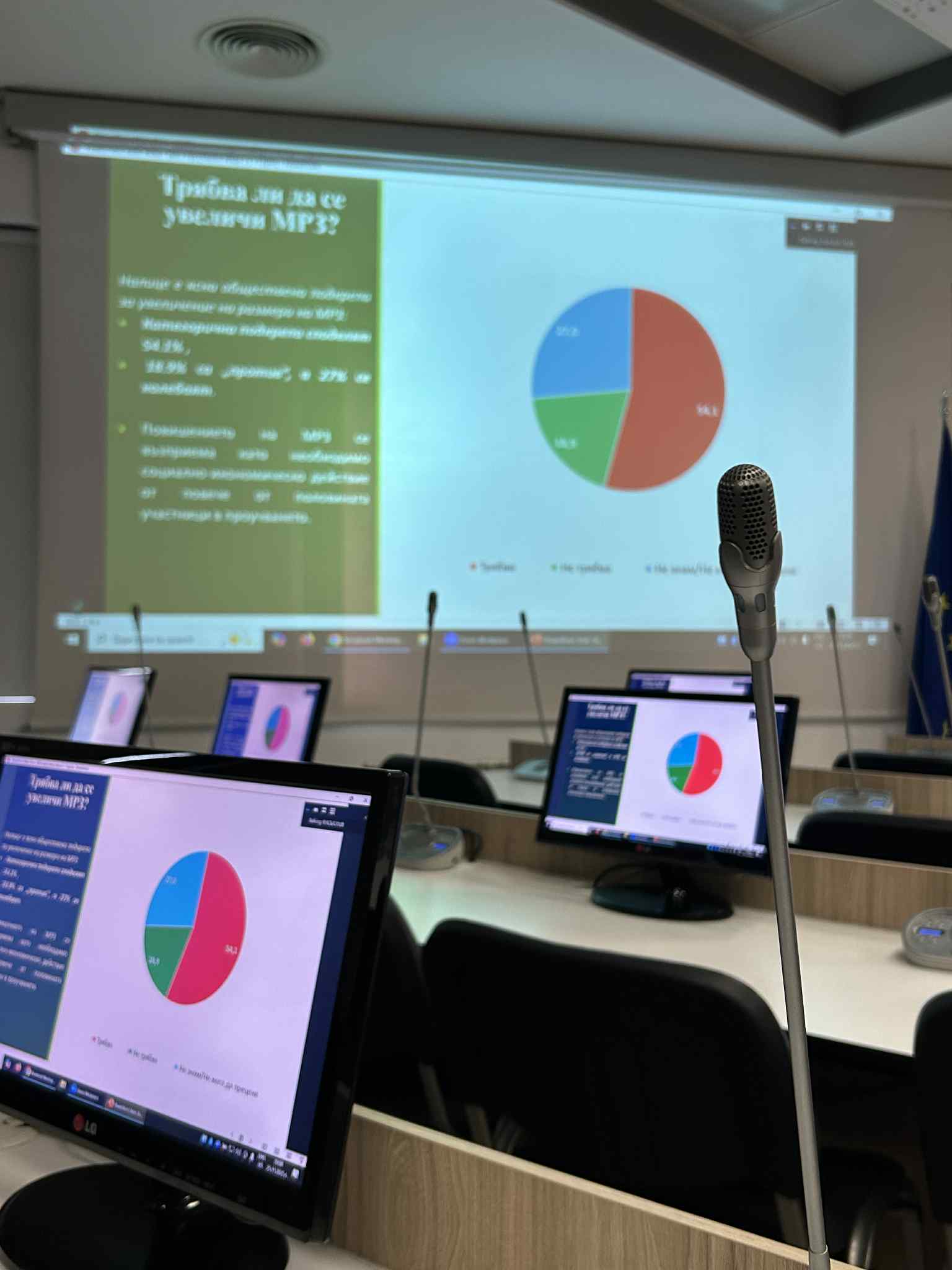 Виолета Иванова посочи, че резултатите от изследването показват, че има устойчиво мнозинство за повишаване на минималната работна заплата, което създава легитимност за нейното увеличение от началото на следващата година.