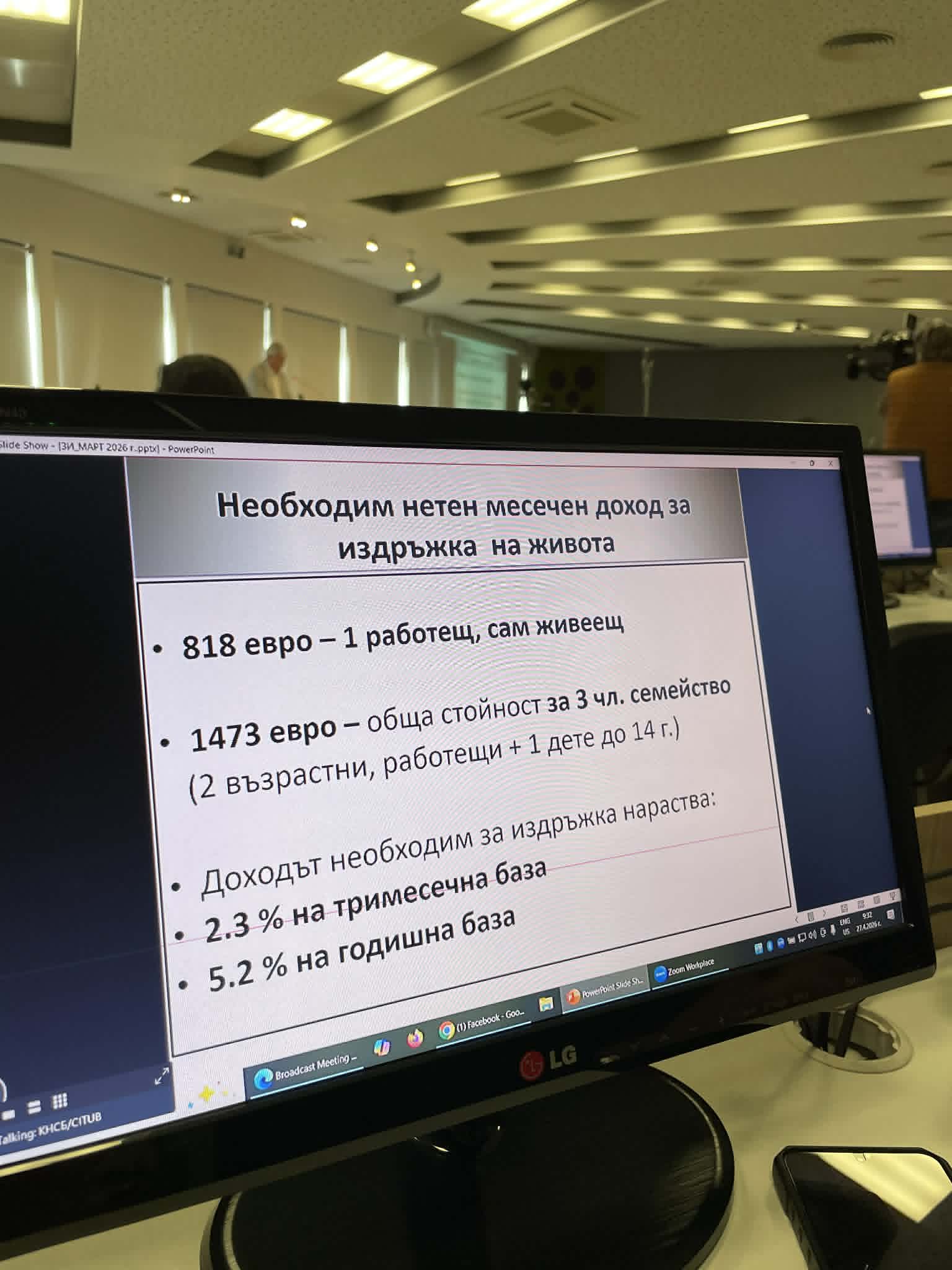 Необходимият месечен доход за издръжка на живота през първото тримесечие на тази година за тричленно семейство (двама възрастни и едно дете до 14 г.) е 1473 евро, а аз един работещ, живеещ сам – 818 евро. Спрямо края на 2025 г. това е ръст с 2,3 процента, а на годишна база увеличението е 5,2 на сто.