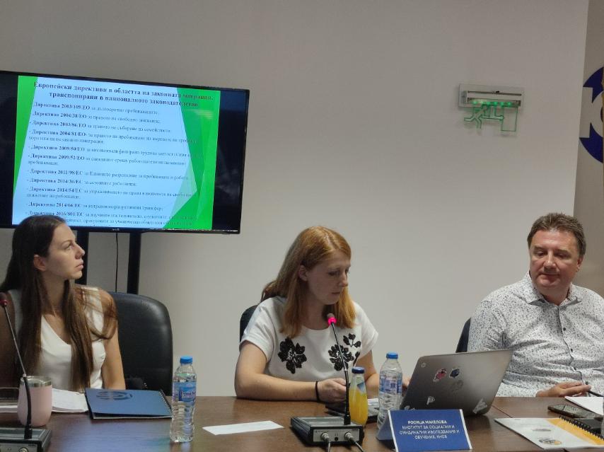 Научният секретар на ИССИО, Росица Макелова постави акцент по темата за достъпа до пазара на труда на работници от трети страни. От страна на CNCE, Федерика Росато разясни процедурите при командироване на работници в Италия и допълни, че в страната няма законово установена минимална работна заплата. Затова КТД са основен инструмент за защита правата на работниците и техните възнаграждения.