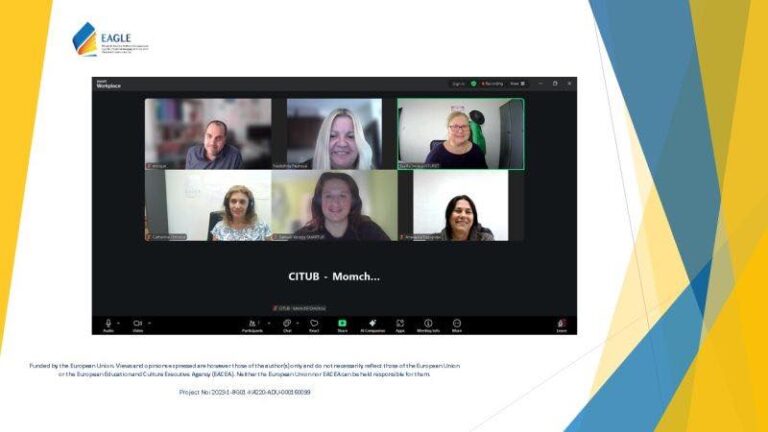 По време на срещата партньорите: Прегледаха резултатите от пилотната фаза, проведена във всички страни партньори, и обсъдиха възможните подобрения въз основа на обратната връзка от участниците. Планираха предстоящите национални събития и заключителната конференция в Брюксел. Начертаха подробните задачи и цели, водещи до успешното завършване на проекта. Тези важни етапи ни доближават до предоставянето на висококачествена … Продължете с четенето на Проектът EAGLE Erasmus+ Project достига вълнуващ етап, след като партньорите проведоха онлайн среща на 26 септември 2025 г., за да съгласуват последните стъпки от за реализирането на проекта.